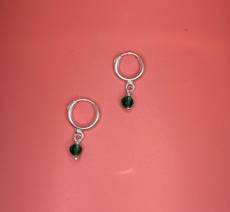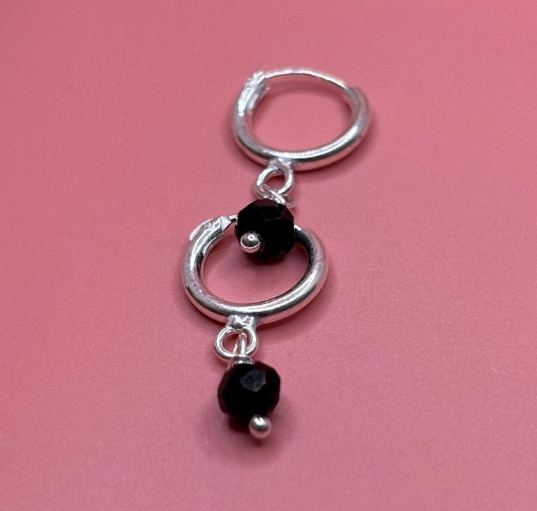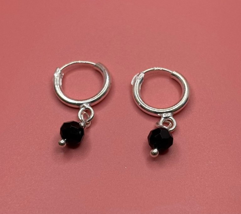 Elegant Silver Hoop Earrings with Black Crystal Drop