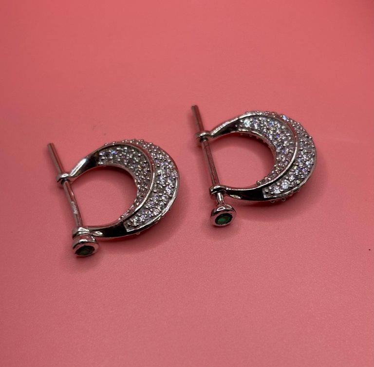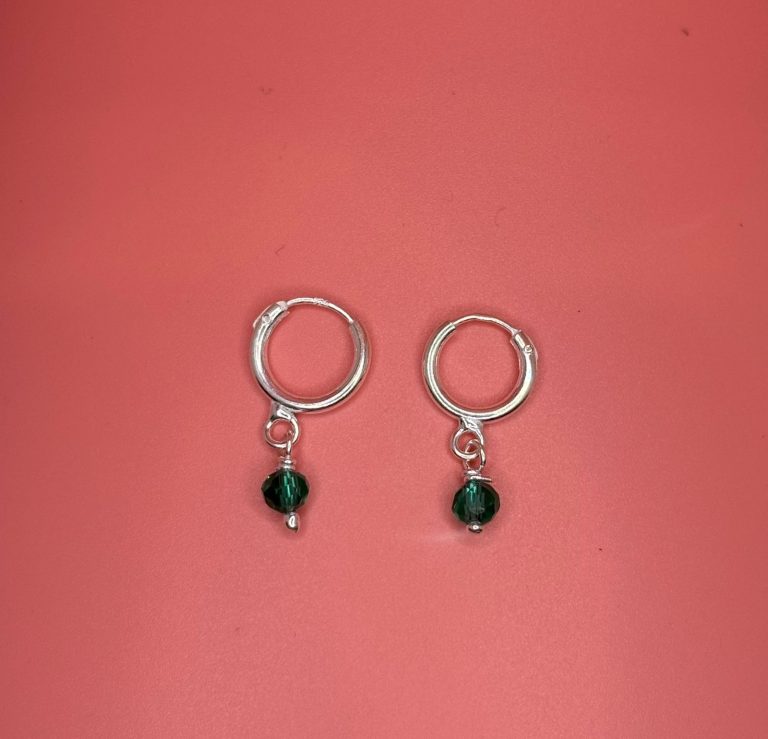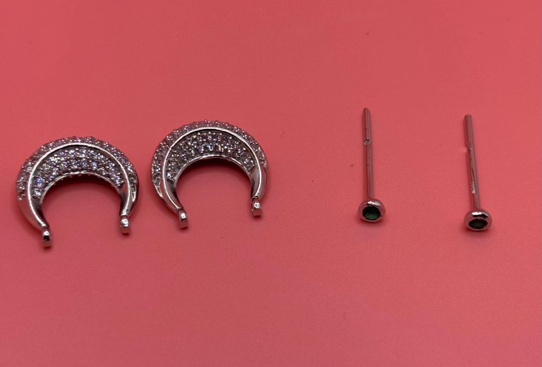 Men’s Sterling Crescent Stud Earrings with Green Stone Accent