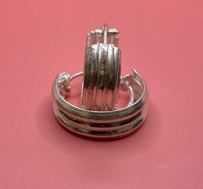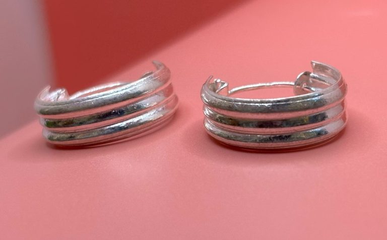 Men’s Bold Silver Hoop Earrings – Triple Groove Design